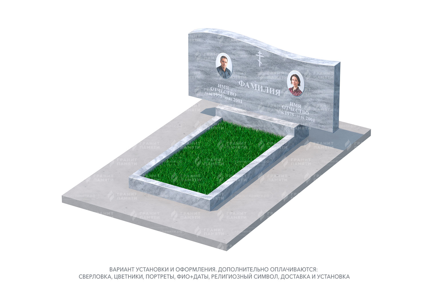 Мы можем добавить портреты на фотокерамике, гравировку с именами, датами и эпитафиями, а также декоративные элементы.
